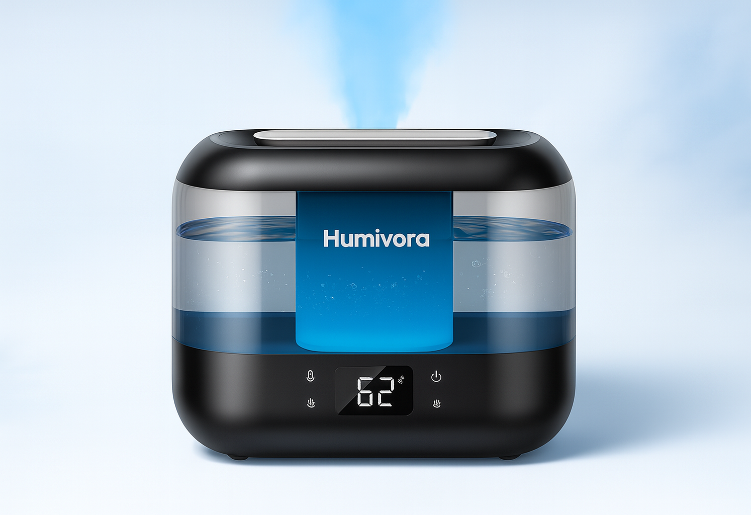 Humivora combines thoughtful design with everyday convenience. The digital display and touch settings make it easy to maintain the desired humidity level. The large tank ensures long-lasting operation, while ultrasonic technology keeps the device almost silent. Discover a new level of freshness at home with Humivora.